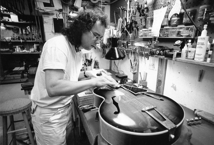 repairing and restoring the unusually large and varied Guild guitar line proved to be an immeasurable source of knowledge about all things guitar. I worked at the Rhode Island factory for a few years, while making the acquaintance of renown luthiers Mark Lacey and Kim Walker, who were respectively the head of R&D and manager of final assembly and both responsible for building a number of prototypes. I also was lucky enough to meet and work for a number of artists playing Guilds, among them Richie Havens, Rick Danko and Livingston Taylor, the latter being the first major American artist who commissioned me to make him…